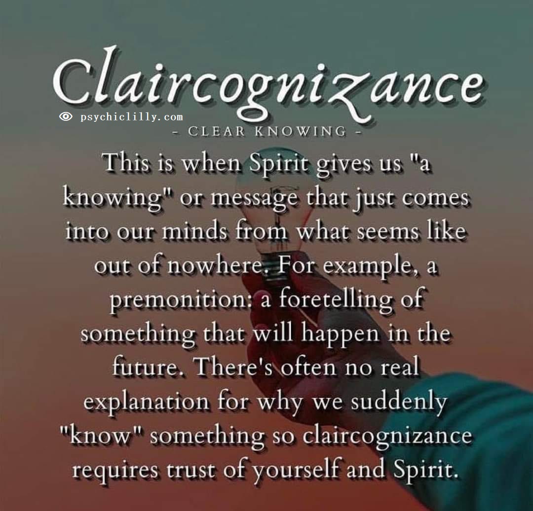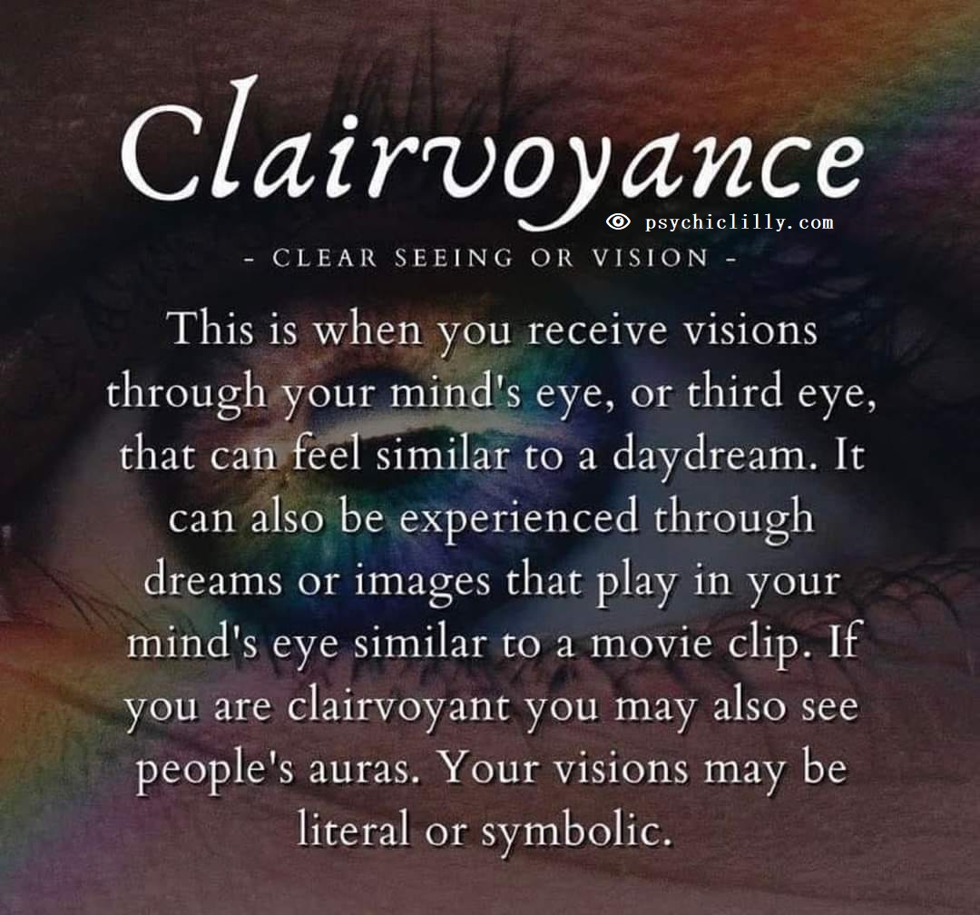 The word CLAIR is a French word meaning CLEAR. Like radio waves, information is being broadcast all around us by way of energy. Learning how to tune in does require some practice but is something that we are all already naturally doing so we can develop these psychic abilities further if we choose.